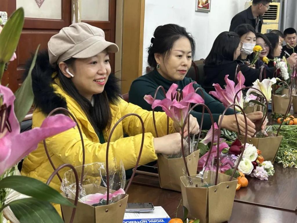 活动伊始,会计学院党总支书记闫慧兰代表学院向全体女教师致以诚挚的节日问候与美好祝福,充分肯定了她们为学院发展作出的辛勤努力与卓越贡献。随后,教师们积极参与插花创作,精心挑选花材、巧妙搭配色彩,以灵巧的双手将朵朵鲜花编织成一件件精美的花艺作品。活动现场,平日忙碌的教师们沉浸于插花艺术的乐趣中,彼此交流心得、分享经验,在花香四溢的氛围中感受节日的温馨与美好。