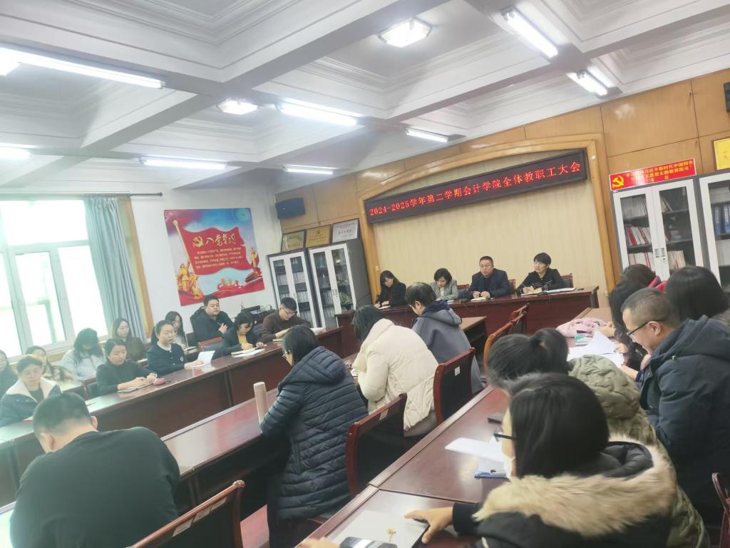 2025年2月28日,会计学院在会计楼309召开新学期全体教职工大会,会议由学院党总支书记闫慧兰主持。