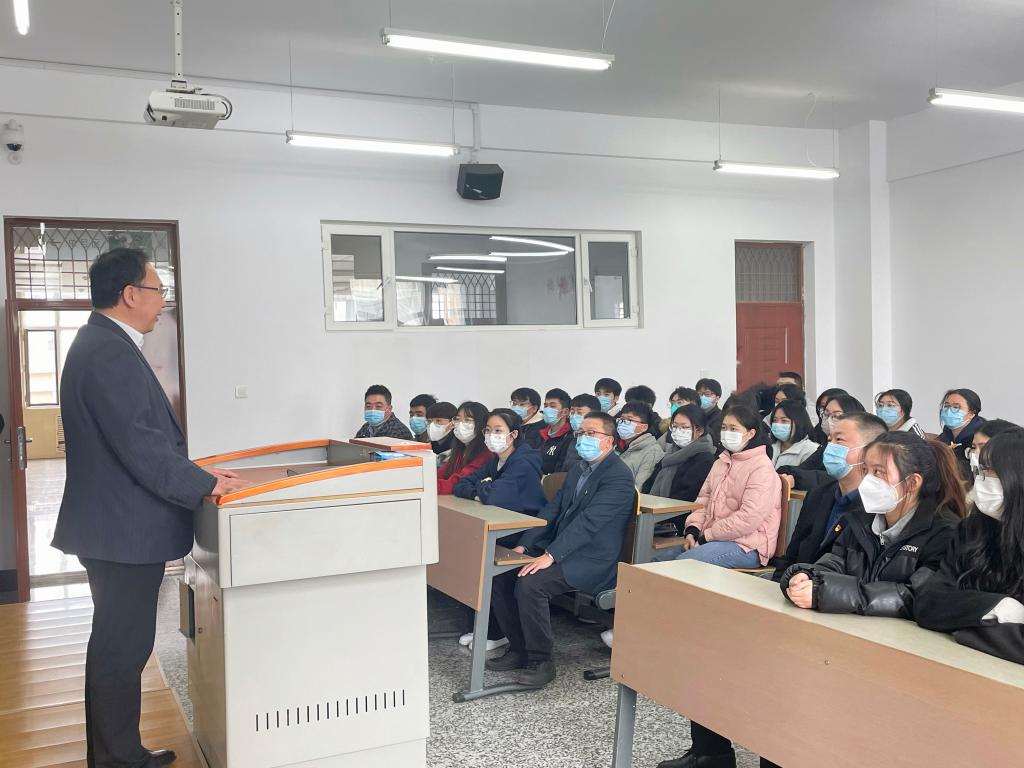 为深入贯彻落实学院党政机关领导干部联系班级制度要求,宣传贯彻党的路线、方针、政策和国家的大政方针;了解学生的思想动态,引导学生牢固树立正确的世界观、人生观和价值观;及时向学生通报学院改革、建设和发展情况,办好师生实事,助推学校高质量发展,3月8日上午10时,在综合楼300教室,学院党委副书记、院长张林深入会计系2021级会计学四班,开展第二次联系班级见面会活动,会计系党总支书记车立秋、会计系副主任段洪成也参加了交流活动,会议由系团总支副书记宫祥龙主持。