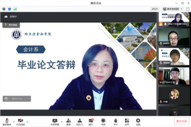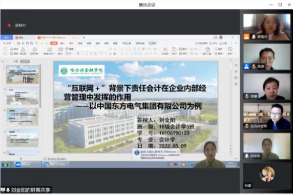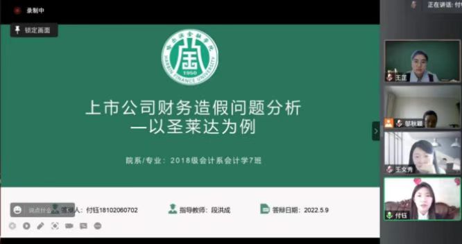 毕业(学位)论文是高校专业人才培养方案的重要组成部分,是对学生学习、研究与实践成果的全面总结,也是对学生综合素质与实践能力的全面检验。今年的毕业生论文答辩经过全体教职工和学生的共同努力,克服一切困难,顺利完成了会计系2022届毕业论文答辩工作。同时线上答辩也为学生提供了一个多角度审视自我、展示自我的平台,作为学生正式步入社会的最后一次考试,在考察学生四年来积累的专业能力以外,也开启了学生进入社会、实现价值的新篇章。