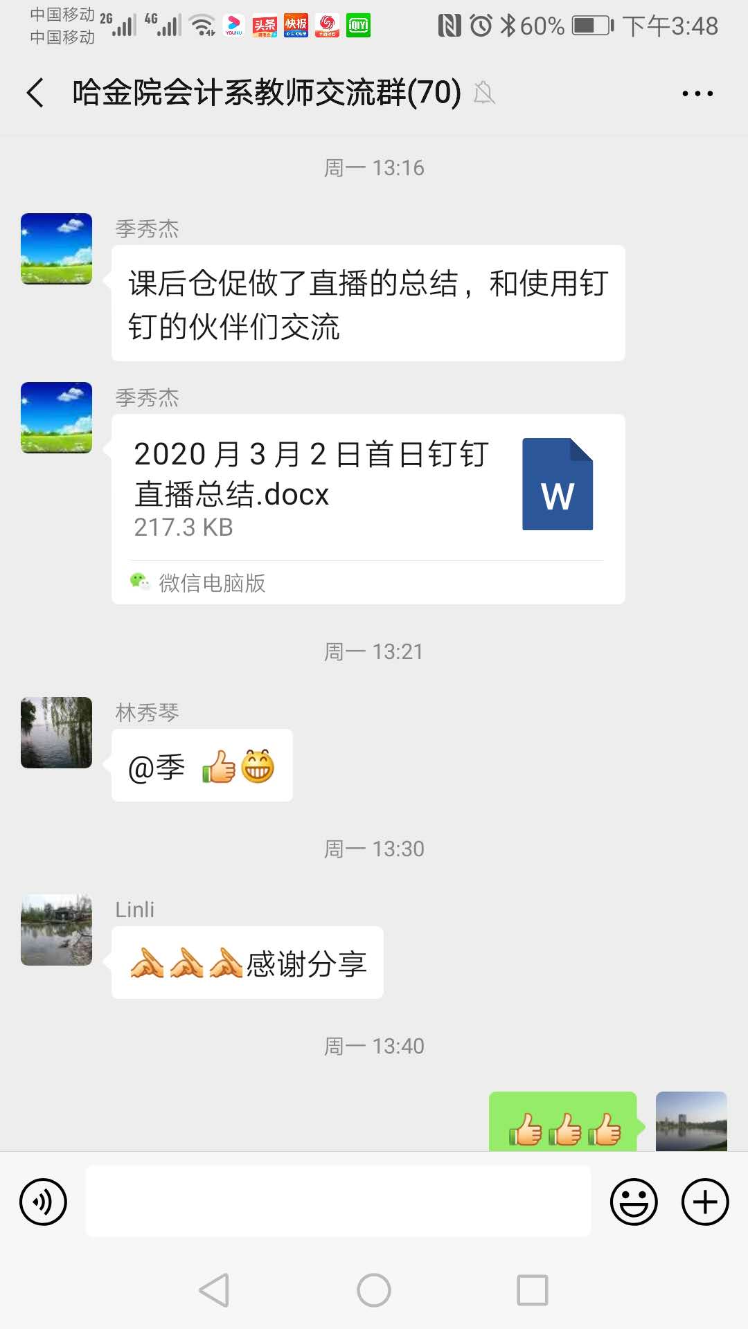 为检测教学效果,无论老师采取何种资源平台和方式进行线上教学,都能够做到以下几点:一是,课后及时进行学情分析,了解学生出勤情况和学习进度,尤其对出勤和学习有问题的学生能够及时了解情况并沟通;二是,归纳总结本次课的重点内容;三是,完成课后答疑;四是,抽查部分同学的课堂笔记;五是,利用平台进行课后测试、发布讨论题目、布置作业及下次课学习内容,使学生的学习永远在路上;最后,线上授课后,很多教师立刻把授课过程的经验和问题通过会计系工作微信群进行分享,热心为其他教师提供帮助。