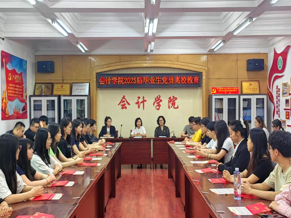 为引导毕业生党员铭记初心使命,强化责任担当,“七一”前夕,会计学院党总支组织开展2025届毕业生党员离校教育活动。学院党总支书记闫慧兰、学生党支部书记及毕业生党员共同参与。