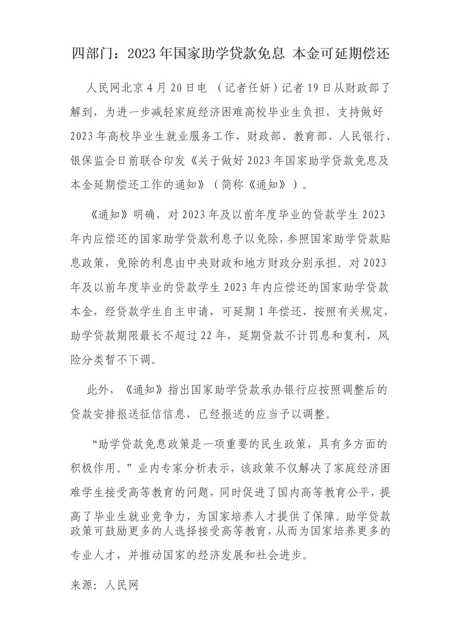 四部门:2023年国家助学贷款免息 本金可延期偿还