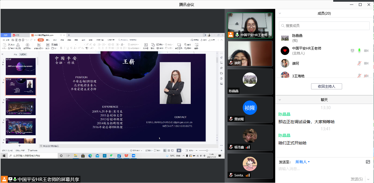 2021年11月5日下午13:30分,会计系就业指导中心携手上海平安总部通过腾讯会议举办了线上宣讲招聘活动,23名2022届毕业生参加了此次线上宣讲会。