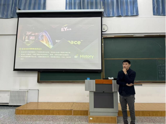 接下来,安永商务咨询(大连)有限公司付经理对于公司的发展、行业的概况、岗位设置、薪酬福利、实习基本情况、实习招聘要求及实习培训事宜向学生们进行了相关的介绍。让学生们充分认清所学知识与市场精准定位之间的关联,进一步明确职业的提升目标,更为想要进入安永商务咨询(大连)有限公司发展的同学提供了清晰导向。