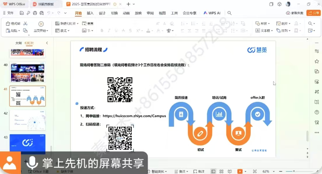 为深化产教融合,推动校企合作迈向新高度,搭建常态化校企沟通桥梁,促进高校人才培养与企业用人需求精准对接,会计学院就业指导中心于2025年3月6日,携手慧策集团通过腾讯会议举办了线上宣讲招聘活动。本次宣讲会由慧策集团人资工作人员主讲,2025届毕业班辅导员秦东杰及30名毕业生参加了此次宣讲会。
