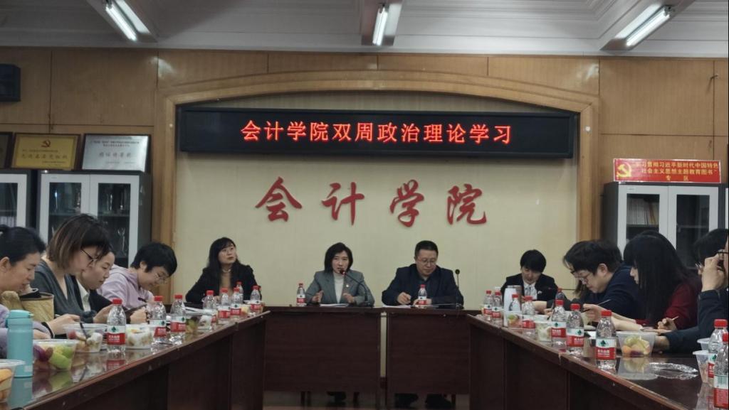 2025年3月12日下午,会计学院在会计楼309会议室开展双周政治理论学习,会议由党总支书记闫慧兰主持,全院教职工参加。