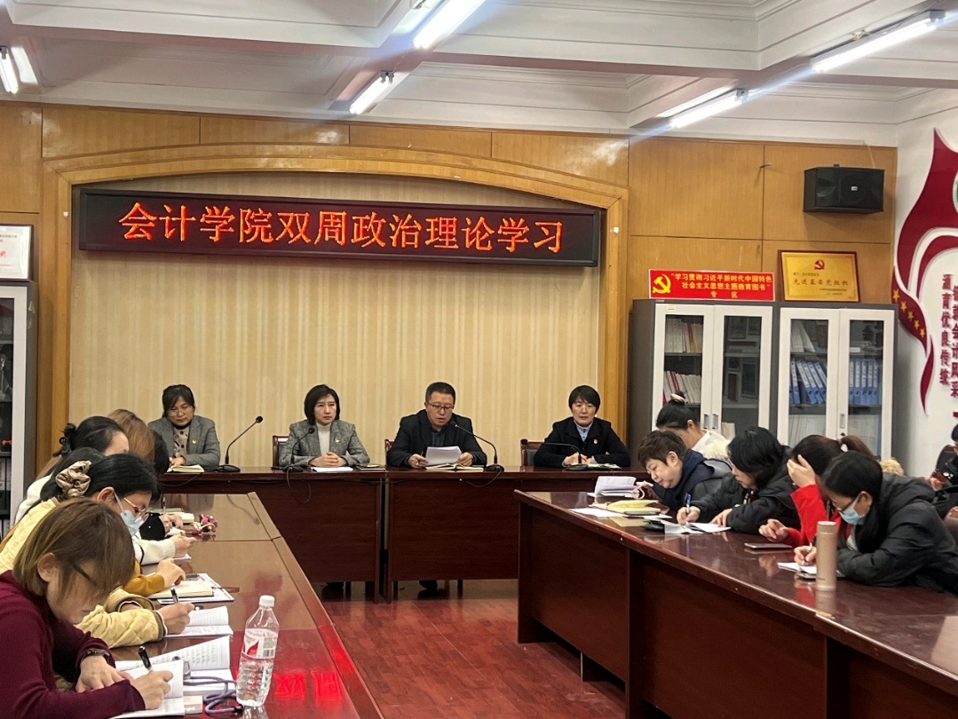 为进一步提升学院教职工政治理论素养,按照学校统一安排部署,2024年11月27日下午,会计学院于会计楼309室开展双周政治理论学习,会议由党总支书记闫慧兰主持,会计学院全体教职工参加。