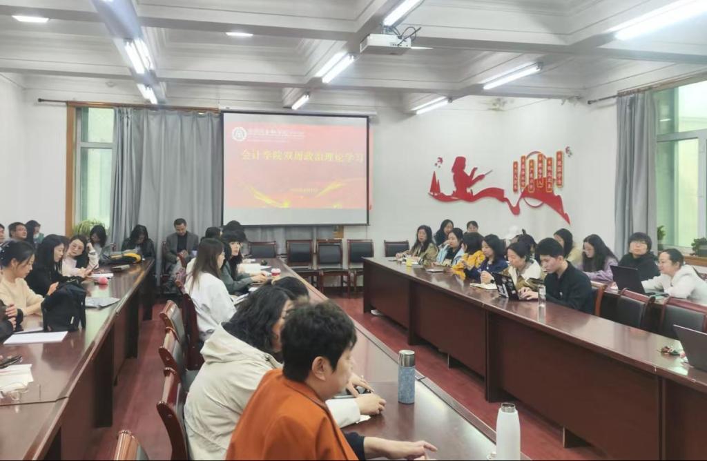 2025年5月7日下午,会计学院在会计楼309会议室开展双周政治理论学习,会议由院长段洪成主持,全体教职工参加。