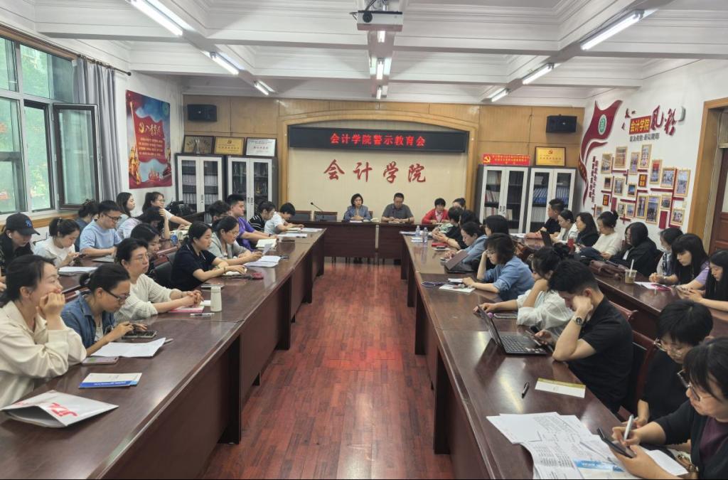 会议强调,高校领域突出问题系统整治工作中师德师风问题是整治重点问题之一,全体教职工要以案为鉴,把扎实开展中央八项规定精神学习教育同推动学院中心工作结合起来,同深化能力作风及师德师风建设工作结合起来,共同营造风清气正的育人环境,为培养德才兼备的高素质会计人才筑牢作风根基,以更加优良的作风推动学院高质量发展再上新台阶。