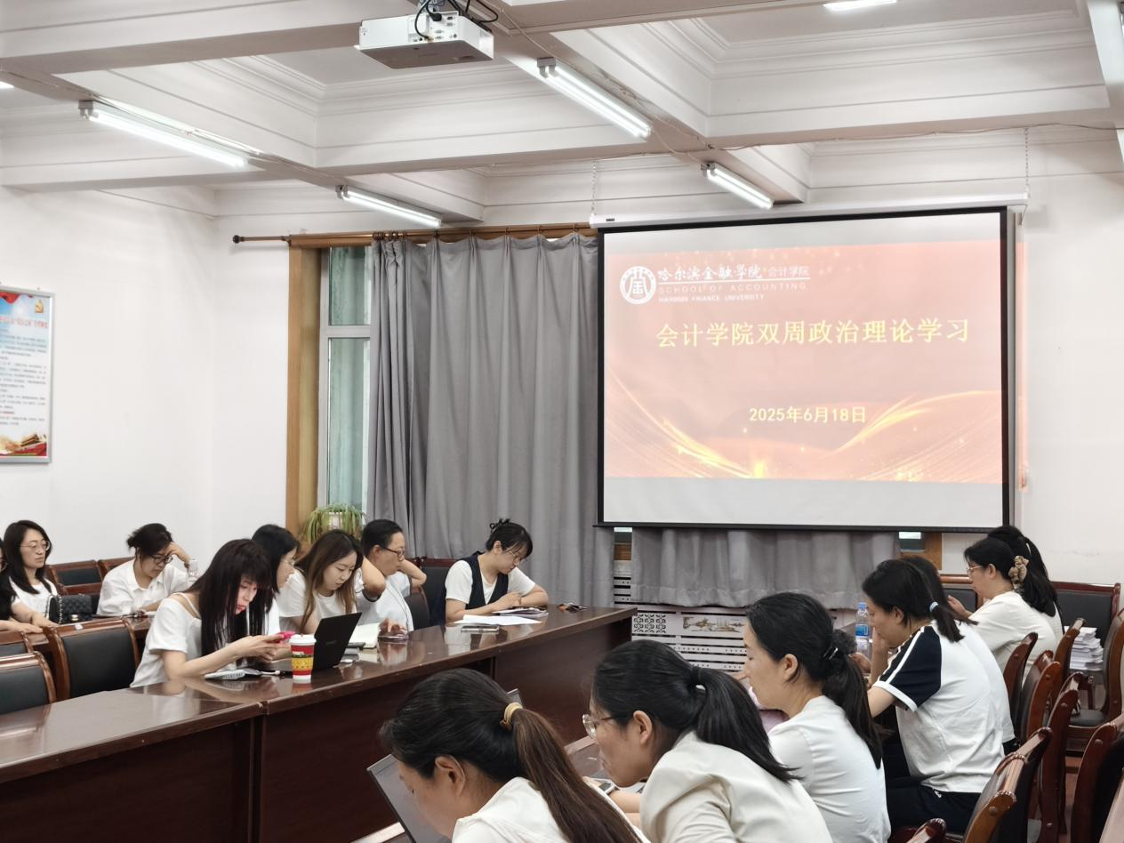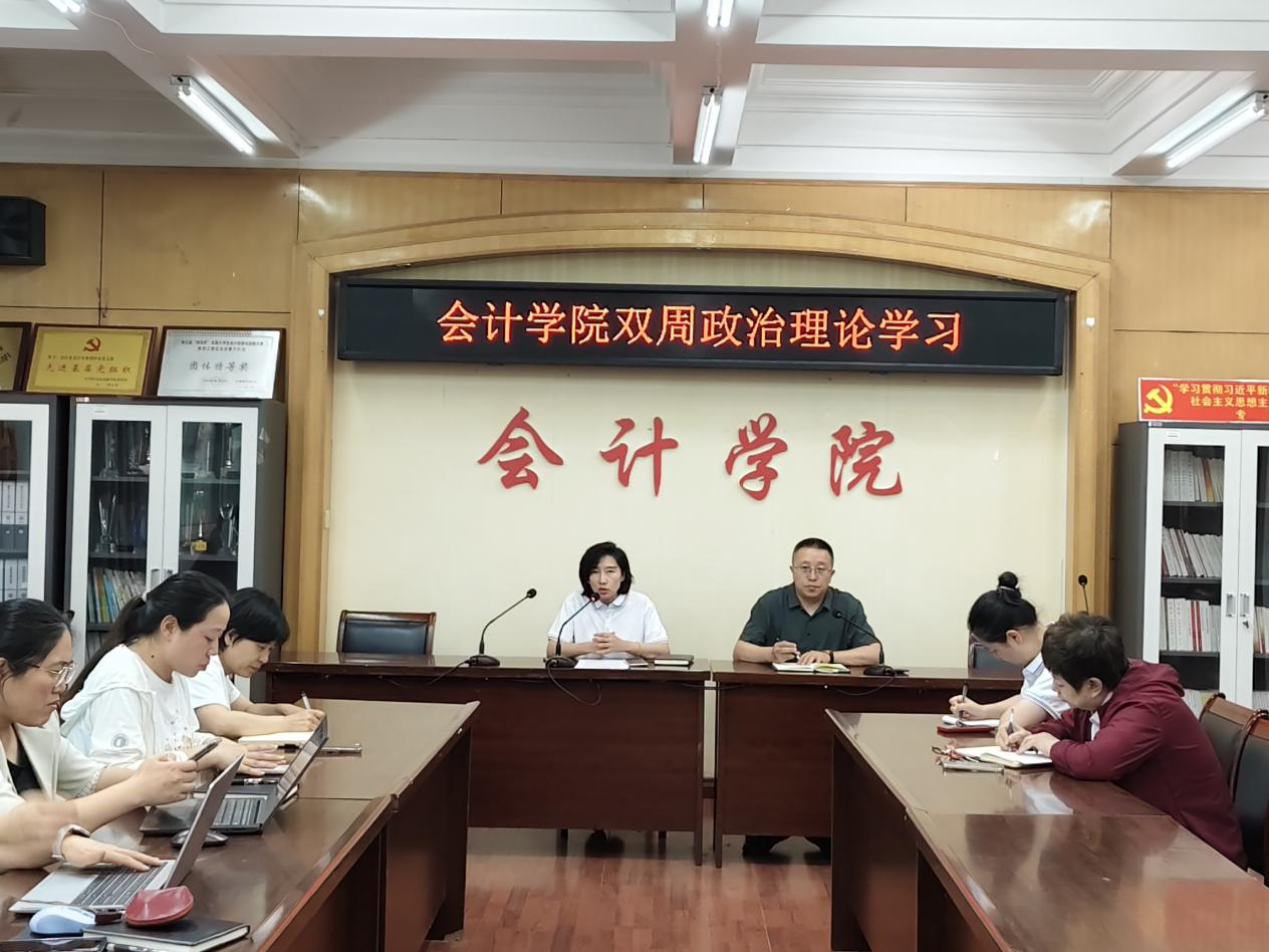 2025年6月18日下午,会计学院在会计楼309会议室组织召开双周政治理论学习会议,会议由党总支书记闫慧兰主持,全体教职工参加。