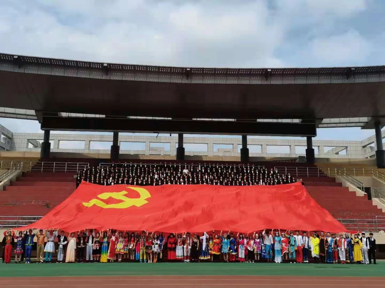 随后,会计系由各民族学生代表组成的56个民族舞蹈队共同献舞《爱我中华》祝福伟大的中国共产党百年华诞。“不忘百年初心,继续砥砺前行!”引领全体党员同志同心共祝,向伟大的中国共产党表达我们坚定爱党爱国爱社会主义的决心。
