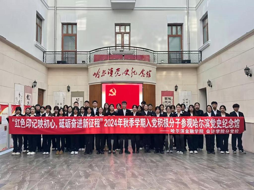 为贯彻落实党的二十届三中全会精神,让学生在实践中学习历史,在实践中开拓进取,继承和发扬党的光荣传统和优良作风,传承红色精神。2024年11月23日,会计学院组织2024年秋季学期入党积极分子分党校培训班学员赴哈尔滨党史纪念馆参观学习,会计学院分党校班主任王雨欣,学生第二党支部书记于文丰参加。