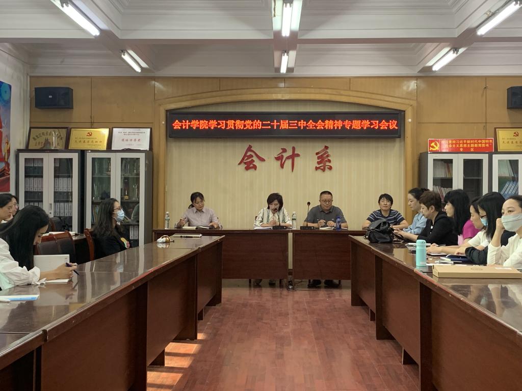 8月23日上午,会计学院召开全体教职工大会传达学习党的二十届三中全会精神。会议由学院党总支书记闫慧兰主持,全体教职工参加。