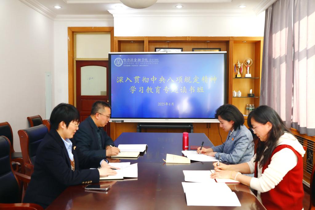 2024年4月1日至3日,会计学院举办深入贯彻中央八项规定精神学习教育专题读书班,组织班子全体成员深学细悟习近平总书记关于加强党的作风建设的重要论述和中央八项规定及其实施细则精神,进一步提高认识、增强信心,坚定不移抓好落实。