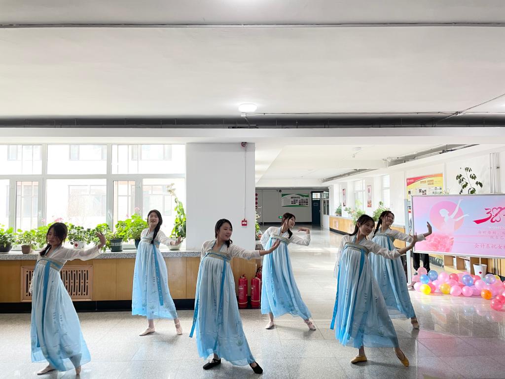 会前学生们进行了精彩的表演,为会计系的女神老师们献上一份节日的祝福。