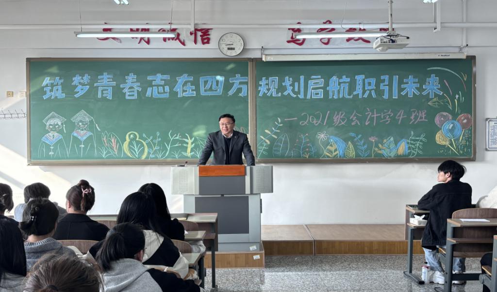 为深入落实立德树人根本任务,进一步加强学校领导干部与青年学生沟通联系,有效形成“三全育人”合力,2024年10月30日上午,学校党委副书记、校长张林深入会计学院参加联系班级2021级会计学4班“筑梦青春志在四方,规划启航职引未来”主题班会。会计学院党总支书记闫慧兰、党总支副书记白永雪、团委书记辅导员宫祥龙及会计学4班全体同学参加。
