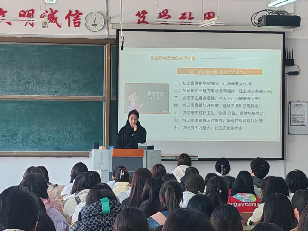 各年级辅导员分别组织学生开展公寓安全主题教育,班会上辅导员结合《哈尔滨金融学院学生公寓管理办法》文件,系统解读宿舍安全管理政策,重点讲解了用电安全的重要性。通过播放近年高校典型宿舍安全事故案例视频,如充电宝自燃引发火灾、室内吸烟致灾等事件,直观呈现安全隐患的严重后果,引导学生树牢“安全无小事,防患于未然”的责任意识。同时,辅导员还教育学生严格遵守公寓安全管理规定,注意用电安全,消除安全隐患,不使用违规电器;做好隐患排查,及时发现报告。全院学生承诺遵守“离寝断电、隐患即报”等“七切记”准则,进一步将安全意识融入日常行为。