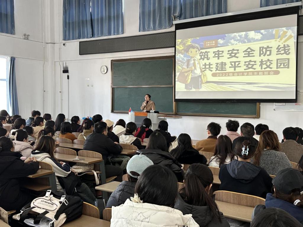 为深入贯彻落实学校“三个一”学风建设周活动要求,进一步强化学生安全意识,规范日常行为,营造安全、和谐的校园环境,会计学院于2025年3月19日组织学生开展“筑牢安全防线,共建平安校园”安全教育主题班会。