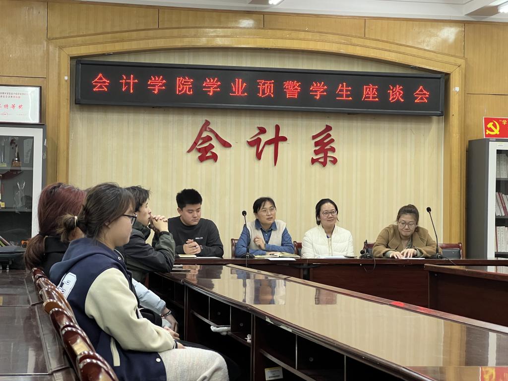 为加强学风建设,提升学业预警学生的学习动力,明确学习的重要性,进一步做好学业预警学生帮扶工作,会计学院于11月1日在会计楼309室召开学业预警学生座谈会。学院党总支副书记白永雪、辅导员王卓林、张轩陌、秦东杰及学业预警学生参加。