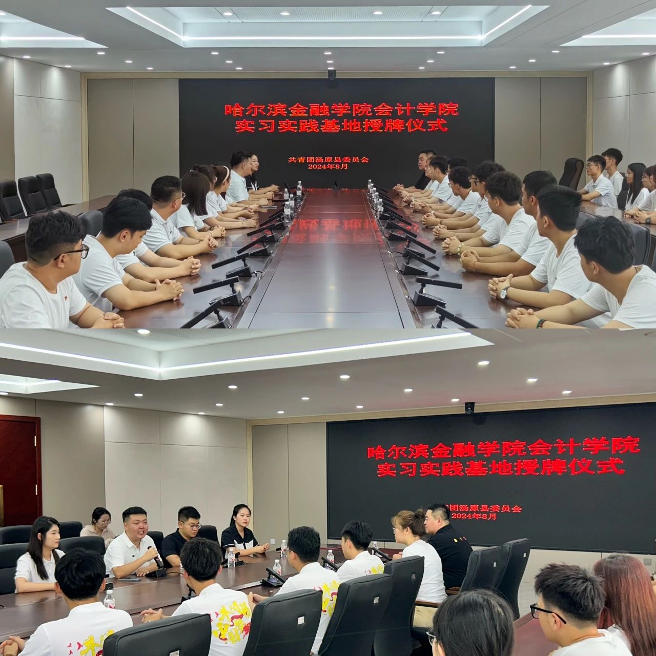 为深化校地共建联建,提升实践育人成效,8月22日下午,实践团来到汤原县人民代表大会委员会,汤原县三位委员代表与哈尔滨金融学院会计学院举办实习实践授牌仪式。校地双方就如何建设实践基地、促进当地发展进行深入探讨,实践团成员充分了解到汤原县人才引进优势,双方以此为契机,合力为当地发展提供智慧支持。