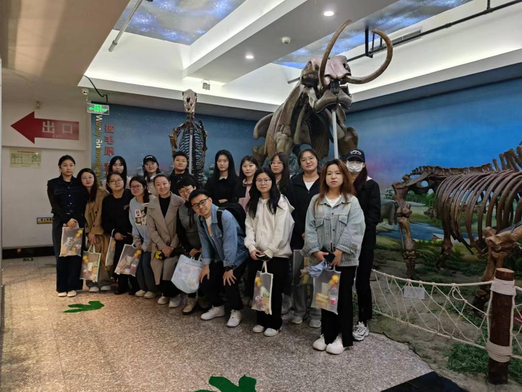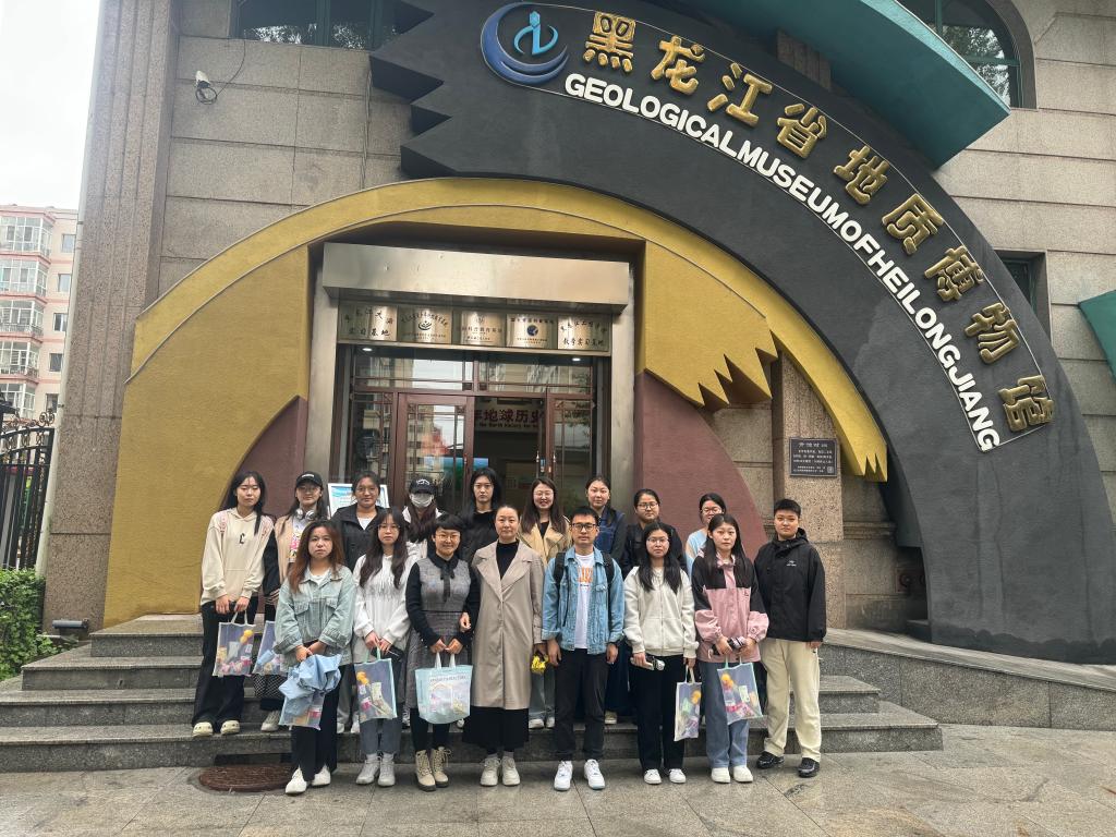 黑龙江省地质博物馆共设锦绣龙江厅、地质矿产厅、岩石矿物厅、地质环境厅、地层古生物厅、恐龙动物群厅、猛犸象-披毛犀动物群厅等七个展厅。在锦绣龙江厅,面向壮美的龙江大地,渠帅向学生们介绍了黑龙江省农业经济的发展状况,矿产资源的分布和开采情况;殷志玮讲解了人工智能、大数据等技术在生产、生活和经济发展中的应用和影响;王金龙介绍了金融科技推动农业经济的作用机理和路径。同时,在参观中,老师们还向学生们讲解了代代龙江人的拼搏精神和奉献精神,宣传了东北抗联精神、北大荒精神、大庆精神和铁人精神。学生们不仅收获了科学知识,也充分感受到了革命先烈的无畏精神和英雄气概。