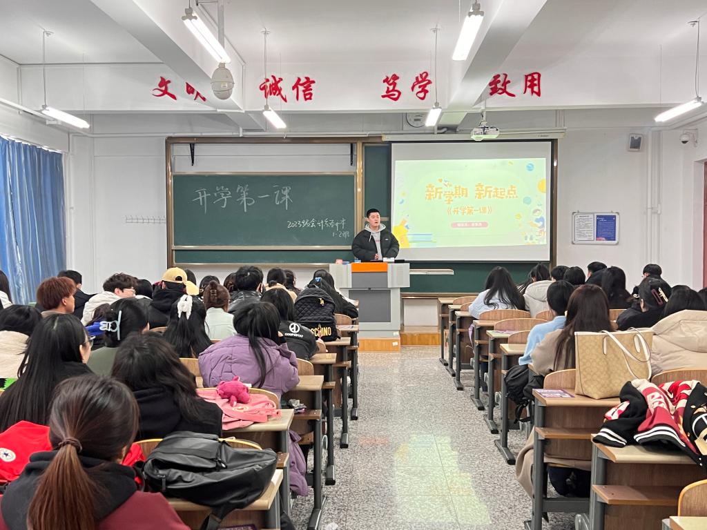 为深入贯彻落实我校2024年春季学期开学工作的部署要求,积极引导学生尽快进入学习状态,打造新学期良好开端,会计系辅导员组织所有在校学生召开“开学第一课”主题班会。