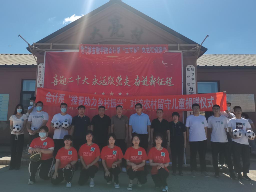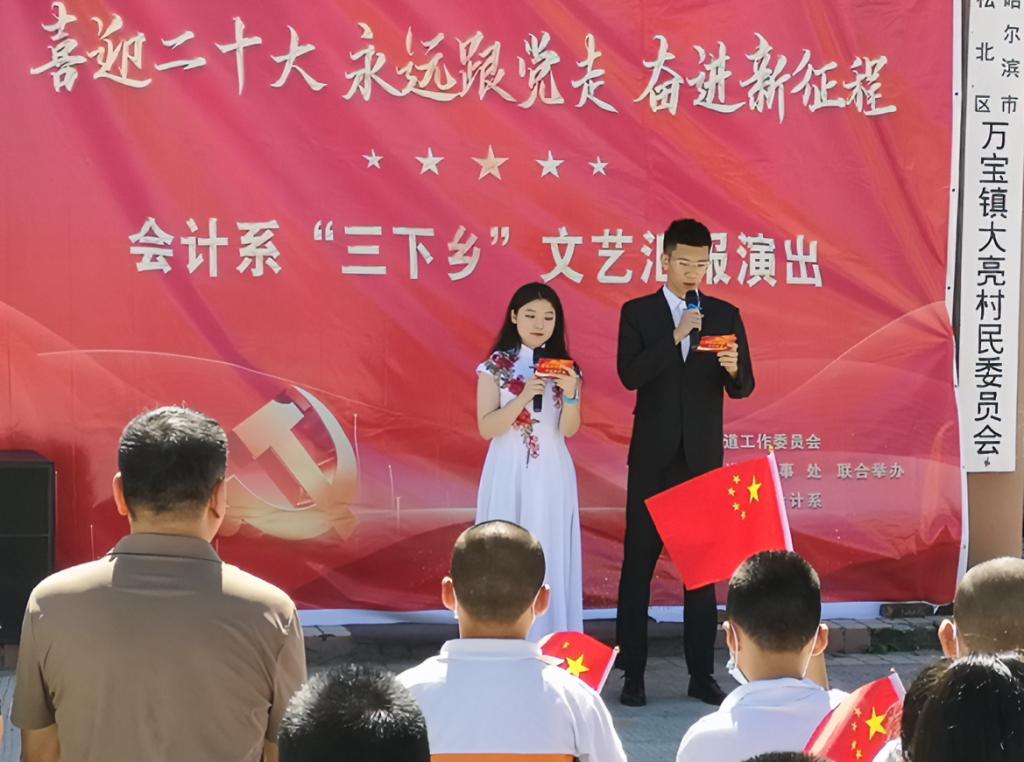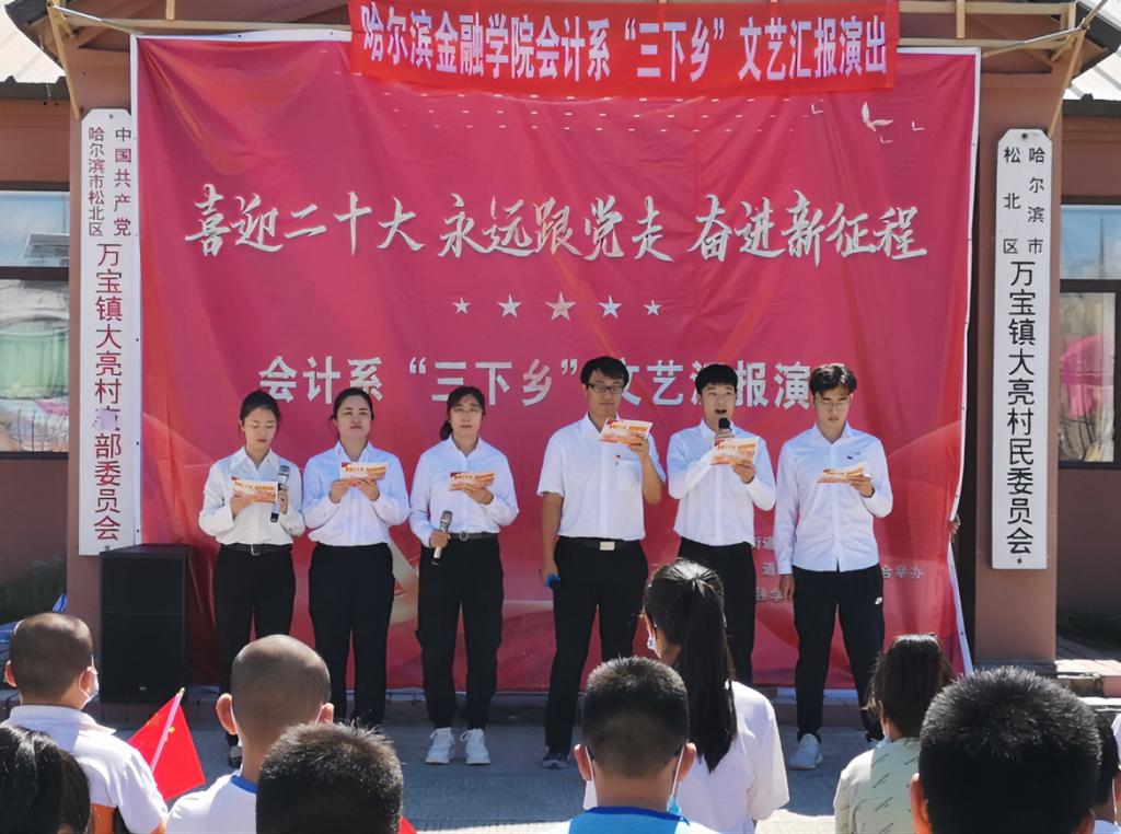 为引导和帮助广大青年学生上好与现实相结合的“大思政课”,在社会课堂中“受教育、长才干、作贡献”,坚定信念听党话、跟党走,迎接党的二十大胜利召开。哈尔滨金融学院会计系“推普助力·乡村振兴”暑期三下乡社会实践活动于2022年7月16日至2022年8月13日分别前往阿城区三家子屯、万宝镇大亮村等地开展了有关文化、科技、卫生的“三下乡”志愿服务活动。