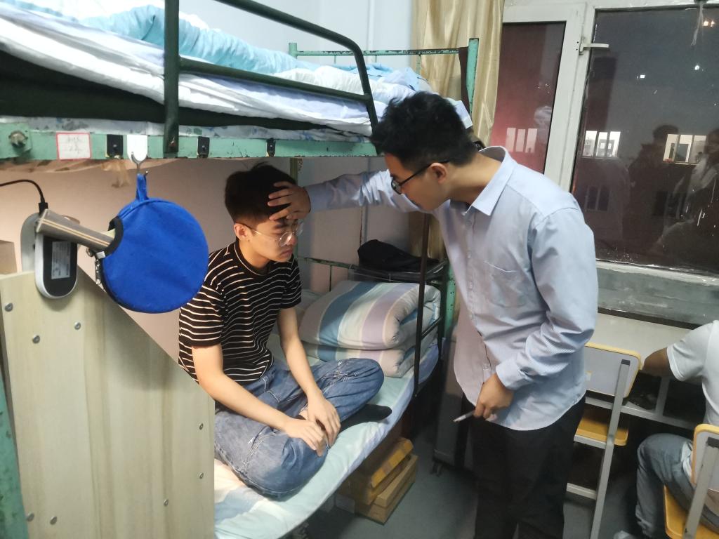 该活动分别于寝室与课堂展开。在寝室中,同学自测体温,后发现体温异常,寝室长立即开窗通风,要求寝室成员戴上口罩,不得离开寝室。其后寝室长拨打辅导员与班长电话,拨打公寓楼值班电话及校医院值班电话,分别报告情况并做好同学们的安抚工作。