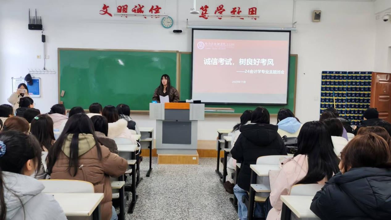 为进一步加强考风考纪建设,强化学生的规则意识、深化诚信价值认知,为大家平稳顺利完成期中考试筑牢思想根基。2025年11月17日至11月21日,会计学院按照学校统一要求,全体辅导员分别深入班级组织学生开展诚信考试主题教育班会。