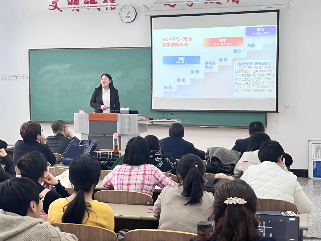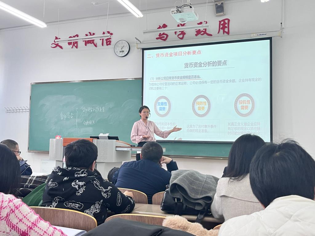 在比赛过程中,参赛教师通过抽签方式决定出场顺序,依次进行现场汇报,并由评委进行匿名打分。最终张晓莉老师凭借其出色的《基础会计》课程脱颖而出,将代表会计系参加学校举办的青年教师教学能手大赛。
