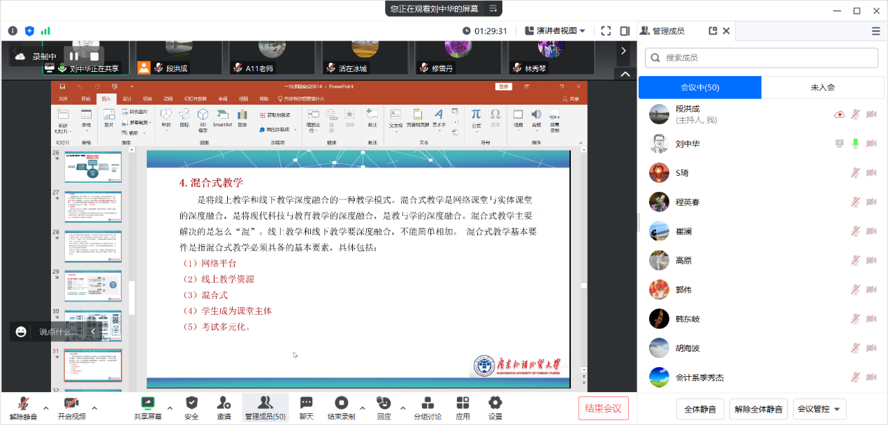 刘教授的精彩解读,对于进一步推进我校一流课程建设工作具有很强的指导作用。国家级一流专业以及一流课程建设工作任重道远,通过本次学习进一步提振了广大教师进行课程建设的信心,相信在学院党委的正确领导下,大家齐心聚力,一流专业及一流课程建设工作必定再创佳绩,全力推动学校教育事业高质量发展。