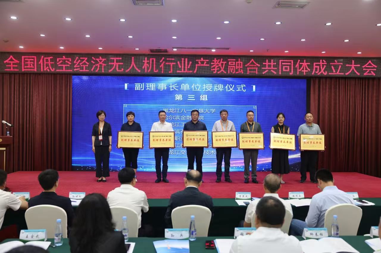 为深入贯彻国家关于推动未来产业创新发展的实施意见精神,响应产教融合共同体建设号召,7月3日,哈尔滨金融学院会计学院院长段洪成及教师代表参加了“全国低空经济无人机行业产教融合共同体成立大会”。此次大会由北大荒通用航空有限公司、东北农业大学、黑龙江农垦职业学院联合牵头,汇聚了全国多所高校、行业企业及研究机构的代表,旨在建立行、企、校合作平台,实现资源共享、优势互补,推动产教融合,创新应用型人才培养,聚焦无人机多领域应用与低空经济技术攻关,推动科技成果转化及产业高质量发展。哈尔滨金融学院已作为副理事长单位加入该共同体。