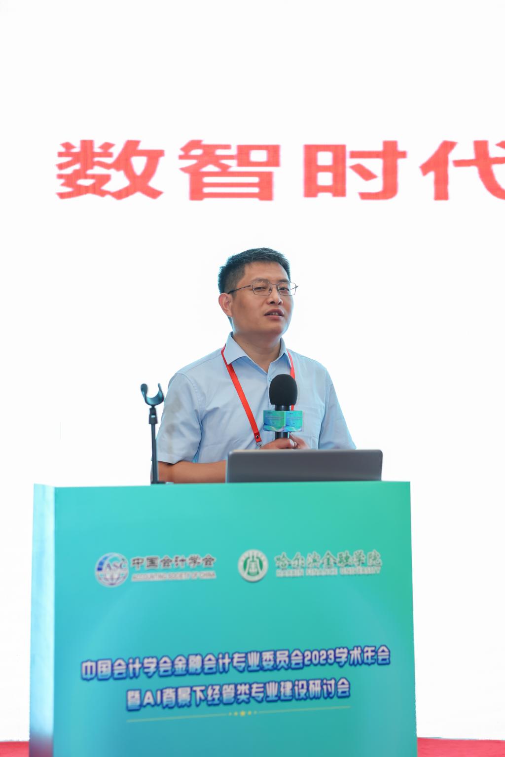 哈尔滨金融学院会计系副主任段洪成教授代表承办单位致辞。他表示本次学术年会的召开有效提升哈尔滨金融学院会计系在金融会计领域的学术影响力,打造金融会计专业交流平台,推动了金融会计理论与实践的创新与发展,为我校“数智金院”建设提供理论支持和方向引领。