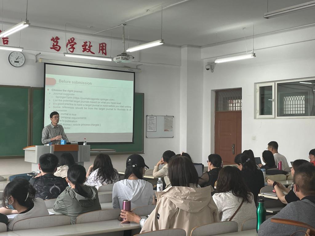 讲座主要从外文期刊撰写、投稿以及审稿等几方面展开介绍。首先是外文论文的撰写,李老师强调要注意写作过程中必须符合外文的语言习惯,尤其是在语法以及相关习语的运用上。其次是介绍如何选择适合自己文章的期刊,同时也要注意在投稿过程中严格按照期刊的相关要求提交,以提高稿件处理的效率。接下来是针对于外文期刊的一般审稿流程就行介绍。最后李老师结合个人实际发表论文的经验向各位教师进行了经验分享。